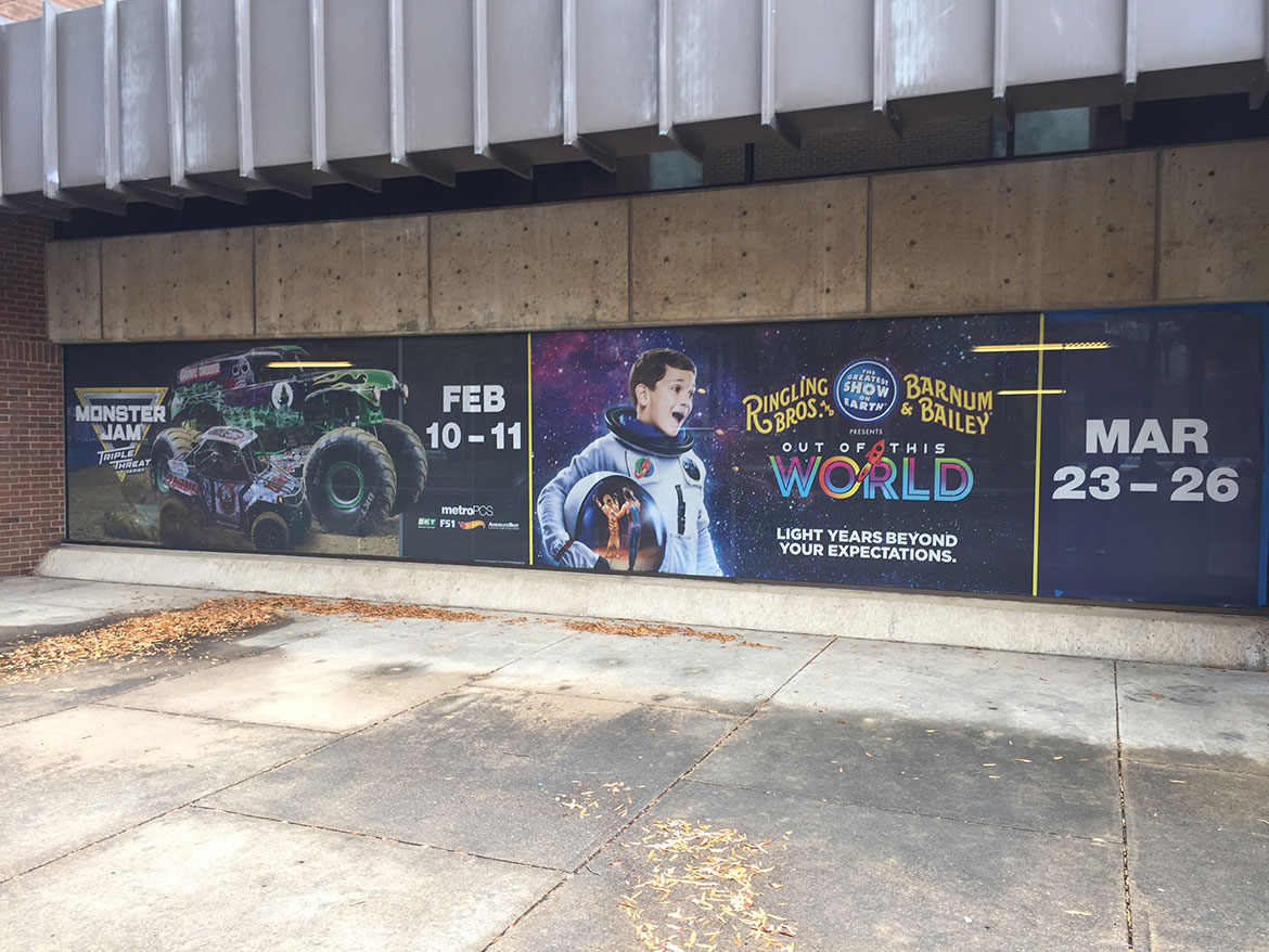 Murals are used for window and concrete wall advertisements, as well as indoor applications. Anti-graffiti murals protect from paints and markers. Special Flatbed / Substrate murals can be used for special applications.